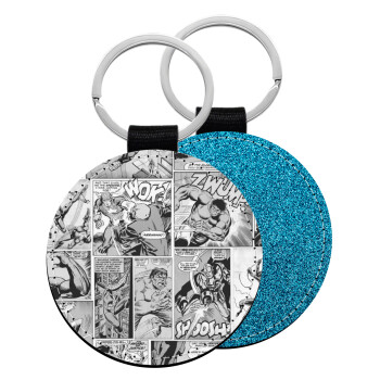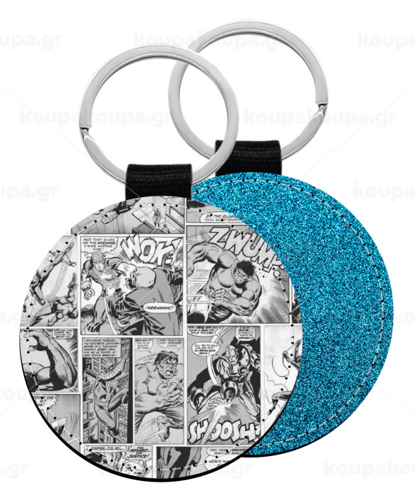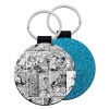 Classic comic Limited B/W, Μπρελόκ Δερματίνη, στρογγυλό ΜΠΛΕ (5cm)