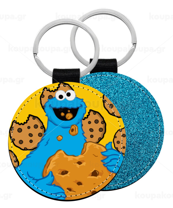 Cookie Monster, Μπρελόκ Δερματίνη, στρογγυλό ΜΠΛΕ (5cm)