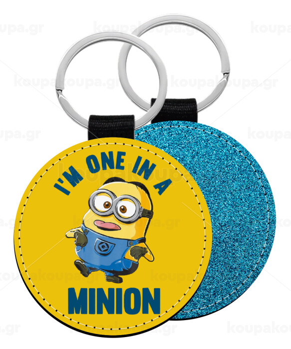 I'm one in a minion, Μπρελόκ Δερματίνη, στρογγυλό ΜΠΛΕ (5cm)