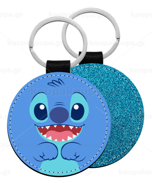 Lilo & Stitch blue, Μπρελόκ Δερματίνη, στρογγυλό ΜΠΛΕ (5cm)