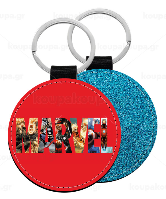 MARVEL Red, Μπρελόκ Δερματίνη, στρογγυλό ΜΠΛΕ (5cm)