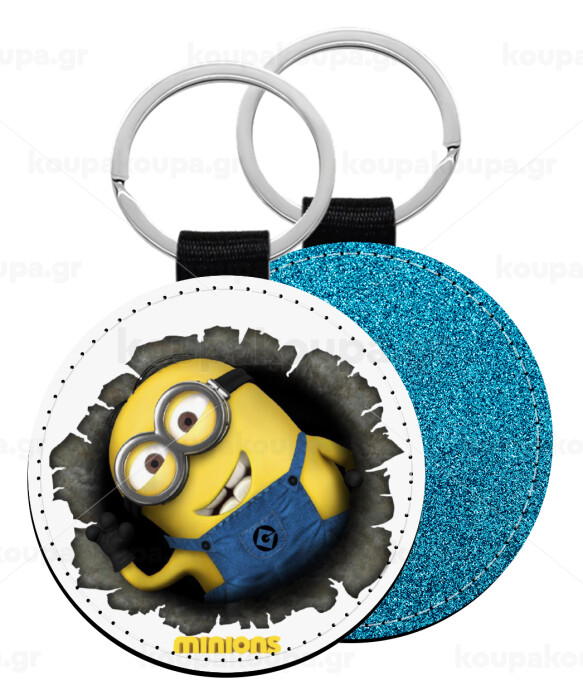 Minions hi, Μπρελόκ Δερματίνη, στρογγυλό ΜΠΛΕ (5cm)