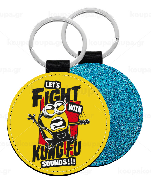 Minions Let's fight with kung fu sounds, Μπρελόκ Δερματίνη, στρογγυλό ΜΠΛΕ (5cm)