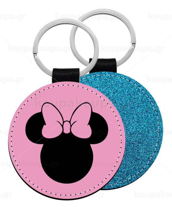 mouse girl, Μπρελόκ Δερματίνη, στρογγυλό ΜΠΛΕ (5cm)