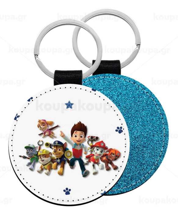paw patrol, Μπρελόκ Δερματίνη, στρογγυλό ΜΠΛΕ (5cm)
