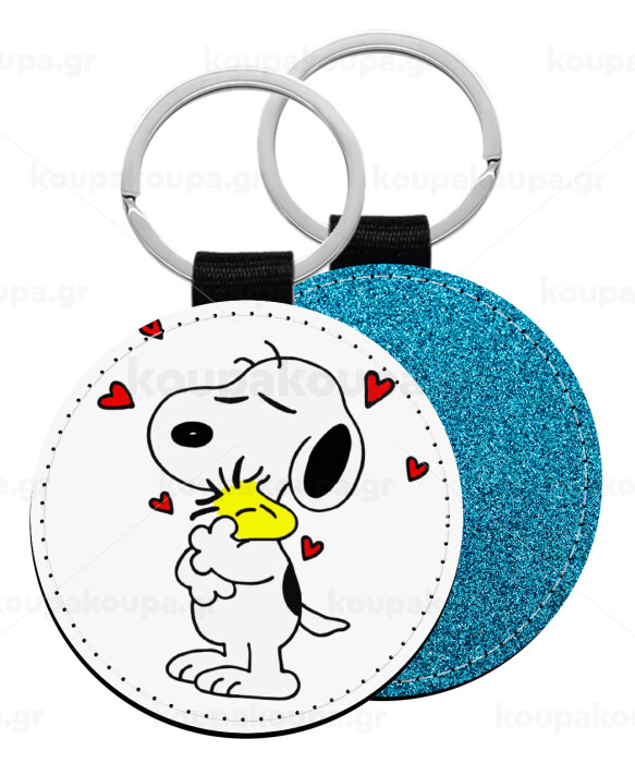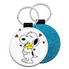 Snoopy Love, Μπρελόκ Δερματίνη, στρογγυλό ΜΠΛΕ (5cm)
