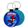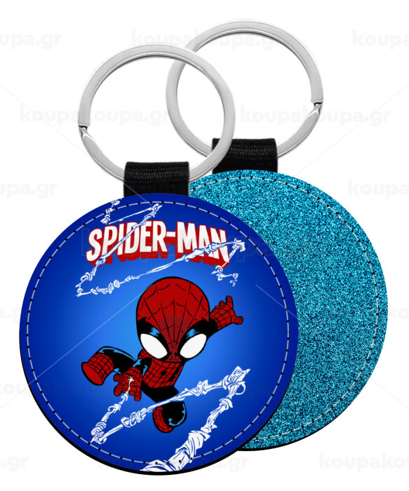 Spiderman kid, Μπρελόκ Δερματίνη, στρογγυλό ΜΠΛΕ (5cm)