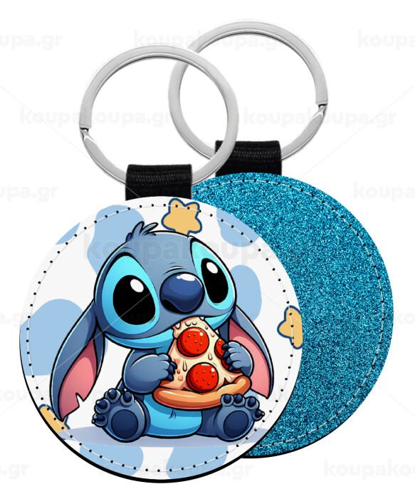 Stitch Pizza, Μπρελόκ Δερματίνη, στρογγυλό ΜΠΛΕ (5cm)