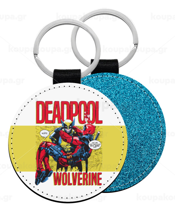 Superhero Deadpool Wolverine, Μπρελόκ Δερματίνη, στρογγυλό ΜΠΛΕ (5cm)
