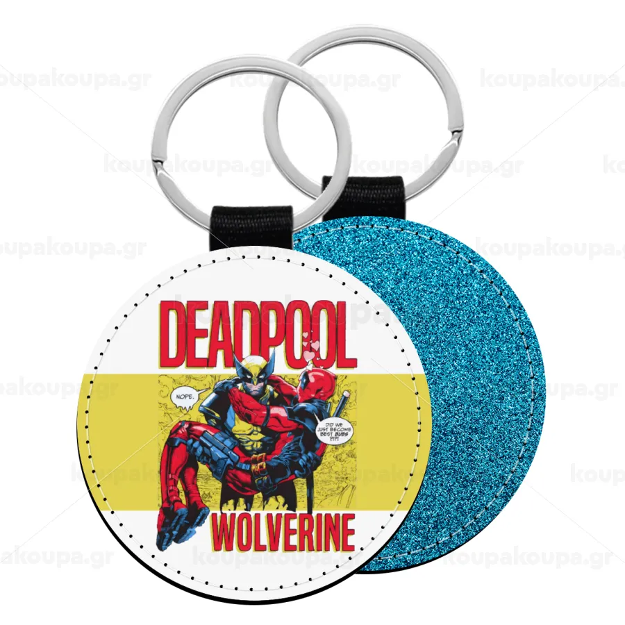Superhero Deadpool Wolverine, Μπρελόκ Δερματίνη, στρογγυλό ΜΠΛΕ (5cm)