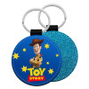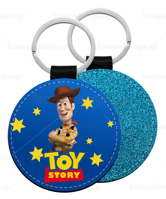 Woody cowboy, Μπρελόκ Δερματίνη, στρογγυλό ΜΠΛΕ (5cm)