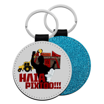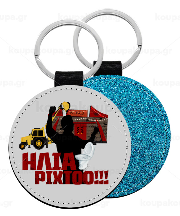 Ηλία ρίχτο!, Μπρελόκ Δερματίνη, στρογγυλό ΜΠΛΕ (5cm)