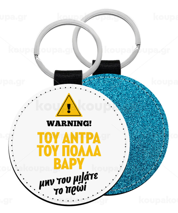 Του άντρα του πολλά βαρύ, Μπρελόκ Δερματίνη, στρογγυλό ΜΠΛΕ (5cm)