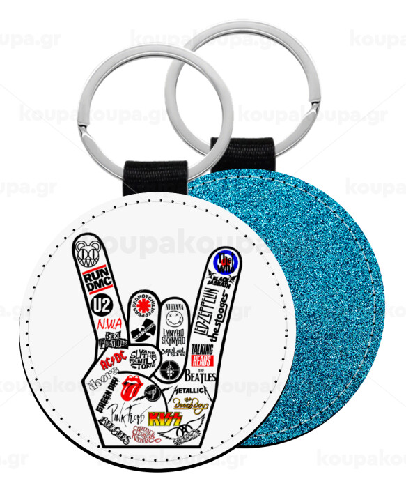 Best Rock Bands hand, Μπρελόκ Δερματίνη, στρογγυλό ΜΠΛΕ (5cm)