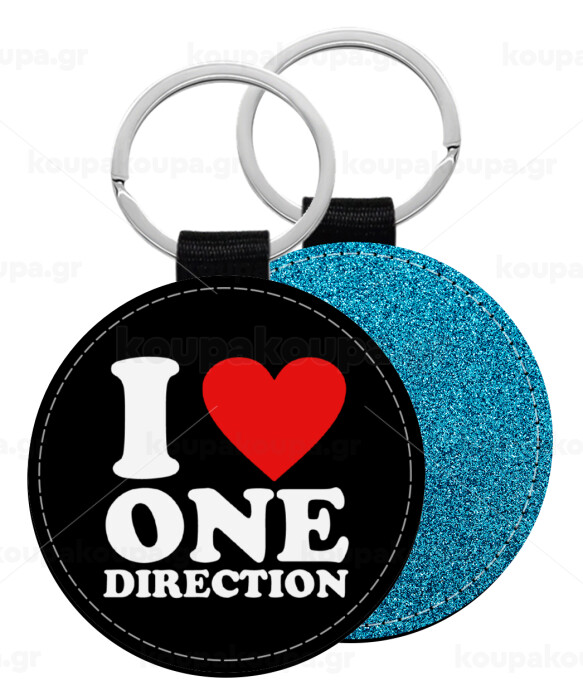 I Love, One Direction, Μπρελόκ Δερματίνη, στρογγυλό ΜΠΛΕ (5cm)