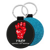 Leatherette keychain with glitter on one side and high resistance leatherette on the other. Safety ring for the keys.