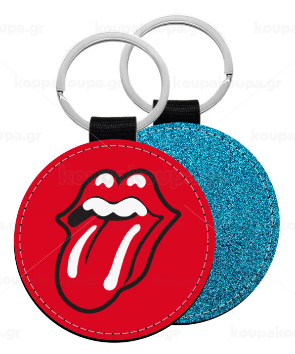 Rolling Stones Kiss, Μπρελόκ Δερματίνη, στρογγυλό ΜΠΛΕ (5cm)