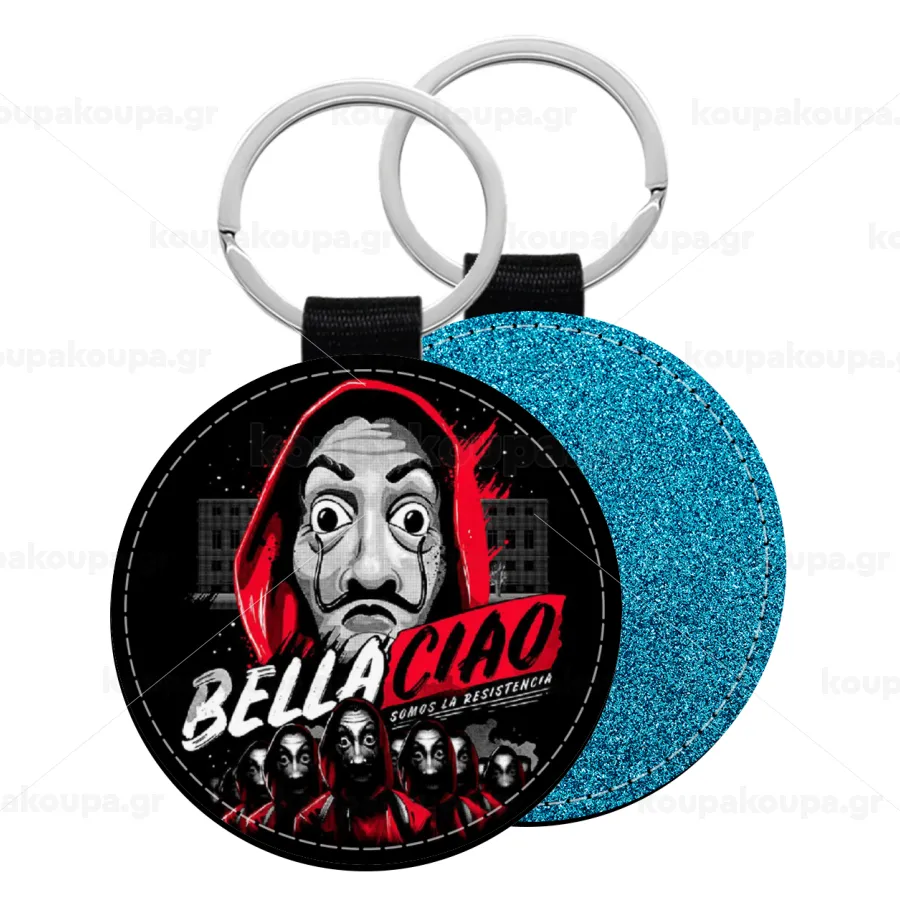 Bella Ciao Somos La resistencia, Μπρελόκ Δερματίνη, στρογγυλό ΜΠΛΕ (5cm)