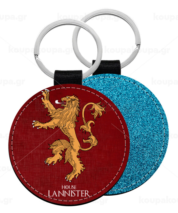 House Lannister GOT, Μπρελόκ Δερματίνη, στρογγυλό ΜΠΛΕ (5cm)