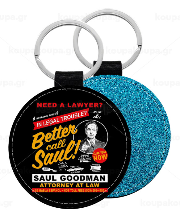 Need A Lawyer Then Call Saul Dks, Μπρελόκ Δερματίνη, στρογγυλό ΜΠΛΕ (5cm)