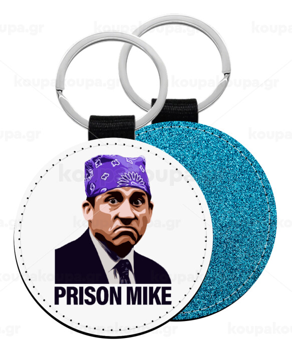 Prison Mike The office, Μπρελόκ Δερματίνη, στρογγυλό ΜΠΛΕ (5cm)