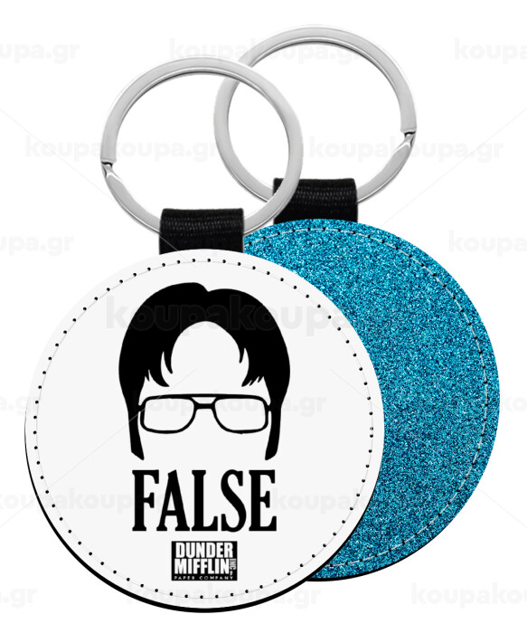 The office Dwight false, Μπρελόκ Δερματίνη, στρογγυλό ΜΠΛΕ (5cm)