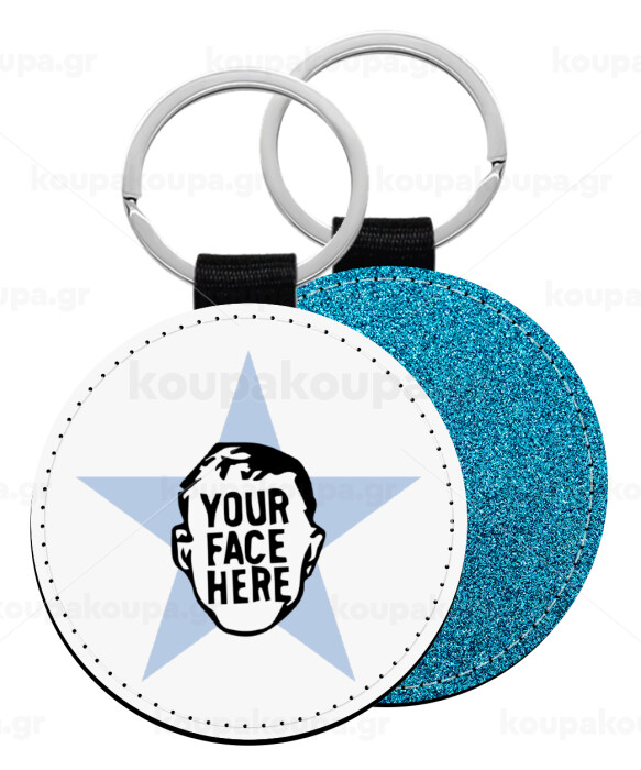 The office star CUSTOM, Μπρελόκ Δερματίνη, στρογγυλό ΜΠΛΕ (5cm)