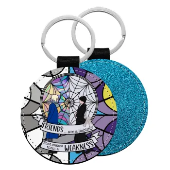 Wednesday window, Μπρελόκ Δερματίνη, στρογγυλό ΜΠΛΕ (5cm)