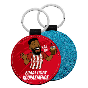 Ροντινέι, "ΠΟΛΥ ΚΟΥΡΑΣΜΕΝΟΣ", Μπρελόκ Δερματίνη, στρογγυλό ΜΠΛΕ (5cm)