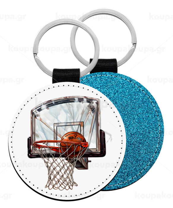 Basketball, Μπρελόκ Δερματίνη, στρογγυλό ΜΠΛΕ (5cm)