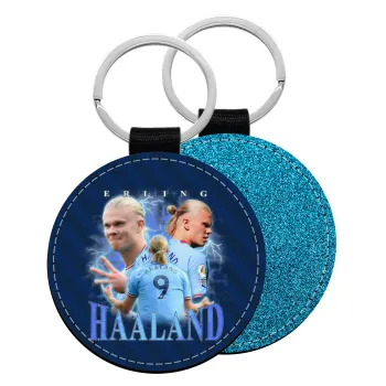 Erling Haaland, Μπρελόκ Δερματίνη, στρογγυλό ΜΠΛΕ (5cm)
