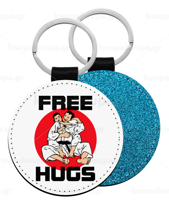 JUDO free hugs, Μπρελόκ Δερματίνη, στρογγυλό ΜΠΛΕ (5cm)