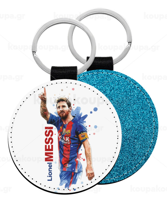 Lionel Messi, Μπρελόκ Δερματίνη, στρογγυλό ΜΠΛΕ (5cm)