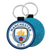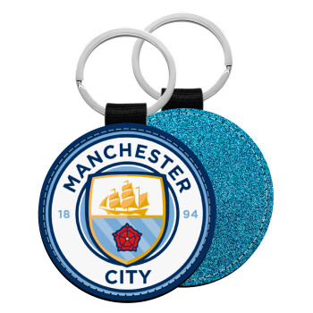 Manchester City FC , Μπρελόκ Δερματίνη, στρογγυλό ΜΠΛΕ (5cm)