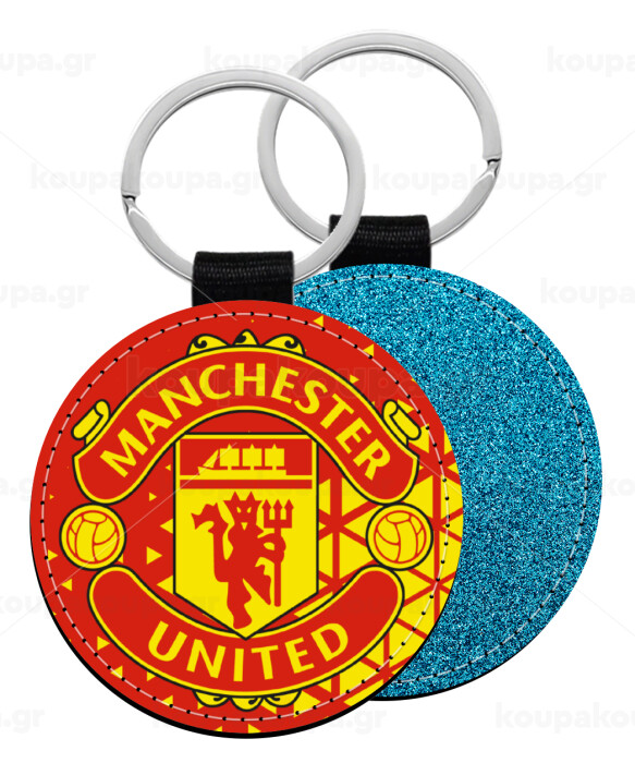 Manchester United F.C., Μπρελόκ Δερματίνη, στρογγυλό ΜΠΛΕ (5cm)