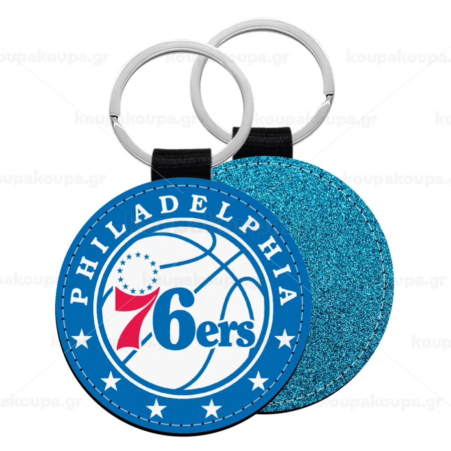 Philadelphia 76ers, Μπρελόκ Δερματίνη, στρογγυλό ΜΠΛΕ (5cm)
