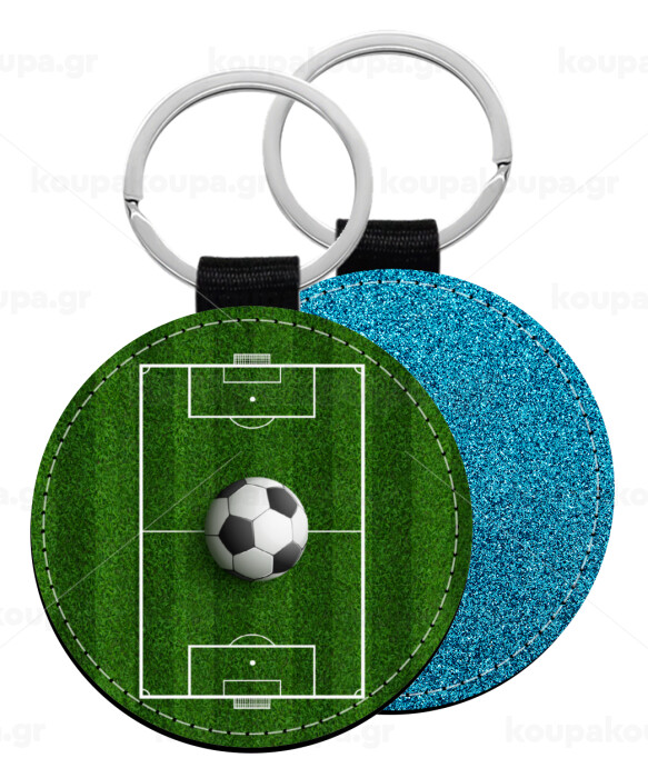 Soccer field, Γήπεδο ποδοσφαίρου, Μπρελόκ Δερματίνη, στρογγυλό ΜΠΛΕ (5cm)