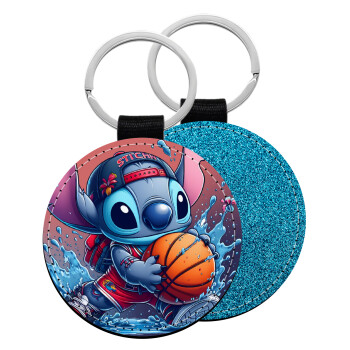 Stitch Basketball, Μπρελόκ Δερματίνη, στρογγυλό ΜΠΛΕ (5cm)