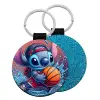 Stitch Basketball, Μπρελόκ Δερματίνη, στρογγυλό ΜΠΛΕ (5cm)