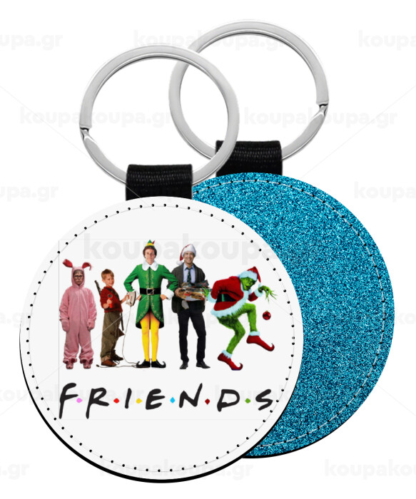 Christmas FRIENDS, Μπρελόκ Δερματίνη, στρογγυλό ΜΠΛΕ (5cm)