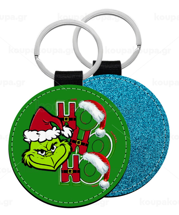 Grinch ho ho ho, Μπρελόκ Δερματίνη, στρογγυλό ΜΠΛΕ (5cm)