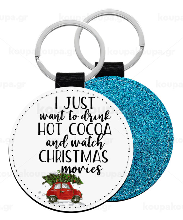 I just want to drink hot cocoa and watch christmas movies mini cooper, Μπρελόκ Δερματίνη, στρογγυλό ΜΠΛΕ (5cm)