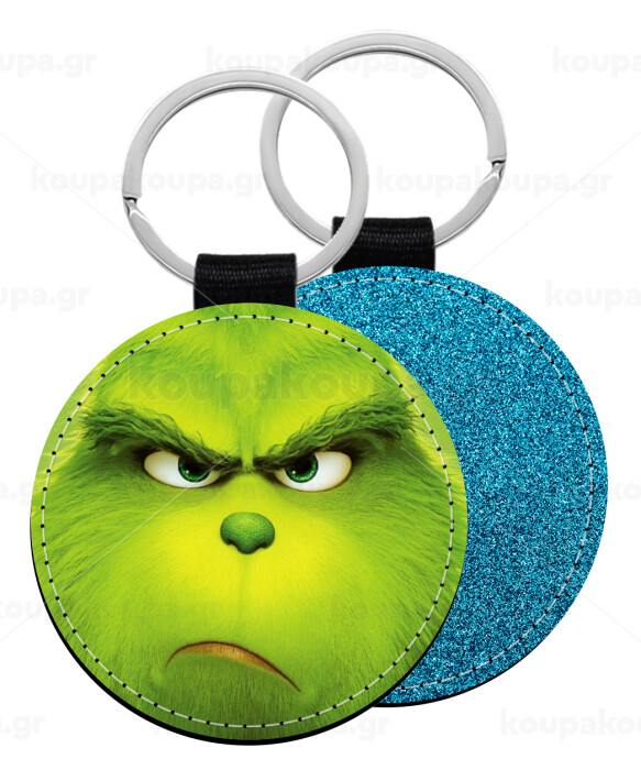 mr grinch, Μπρελόκ Δερματίνη, στρογγυλό ΜΠΛΕ (5cm)