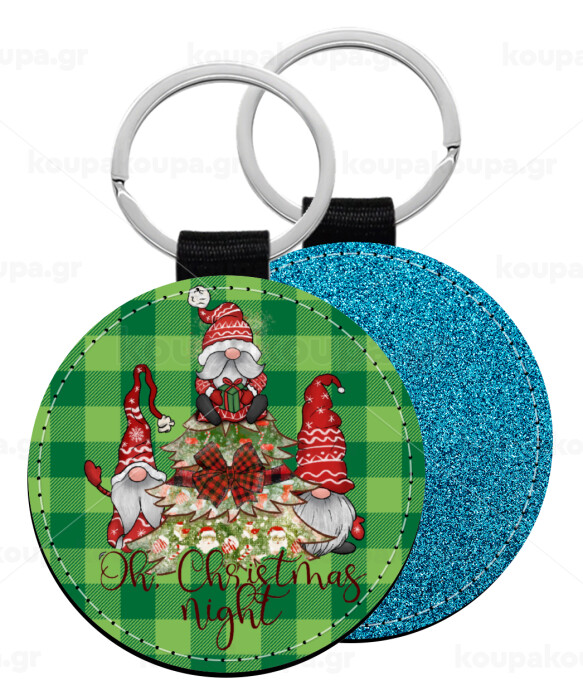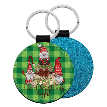 Oh Christmas Night, Μπρελόκ Δερματίνη, στρογγυλό ΜΠΛΕ (5cm)