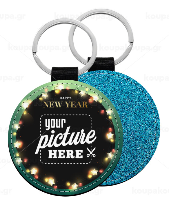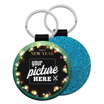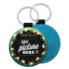 PHOTO xmas lights, Μπρελόκ Δερματίνη, στρογγυλό ΜΠΛΕ (5cm)