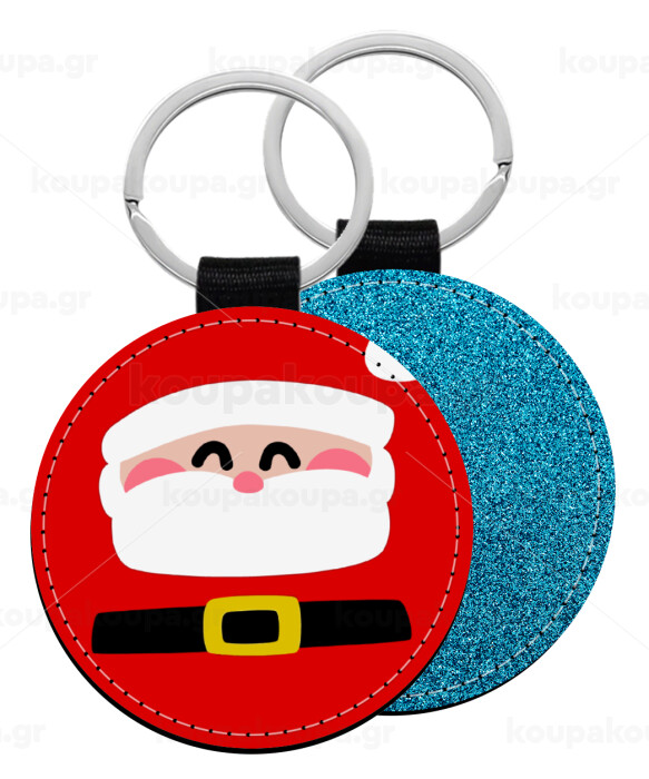 Simple Santa, Μπρελόκ Δερματίνη, στρογγυλό ΜΠΛΕ (5cm)