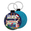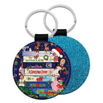 Xmas Classic movies, Μπρελόκ Δερματίνη, στρογγυλό ΜΠΛΕ (5cm)
