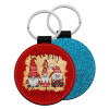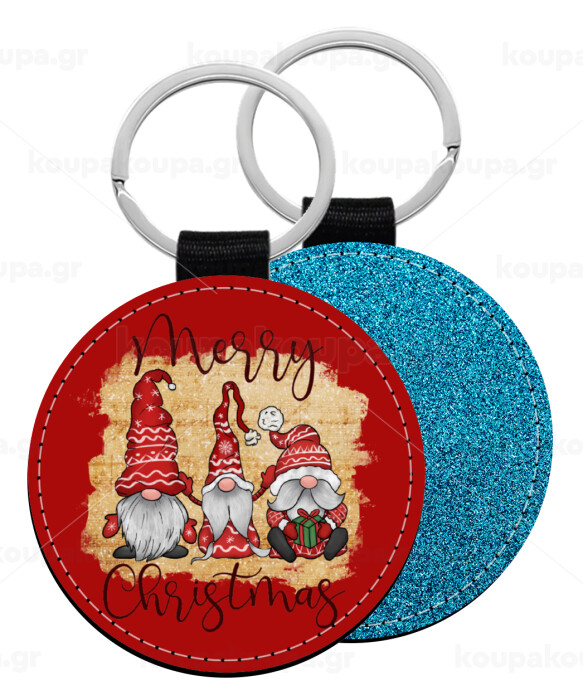 Xmas Elves, Μπρελόκ Δερματίνη, στρογγυλό ΜΠΛΕ (5cm)