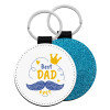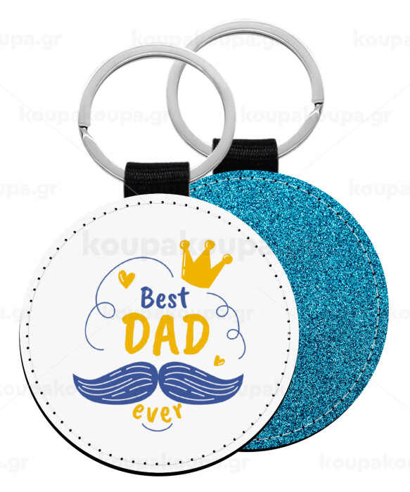 Best dad ever ο Βασιλιάς, Μπρελόκ Δερματίνη, στρογγυλό ΜΠΛΕ (5cm)