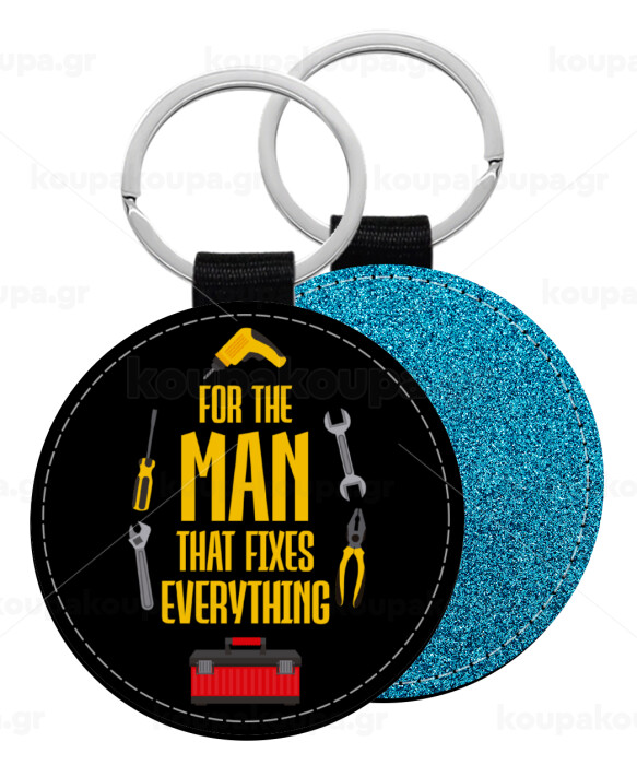 For the man that fixes everything!, Μπρελόκ Δερματίνη, στρογγυλό ΜΠΛΕ (5cm)